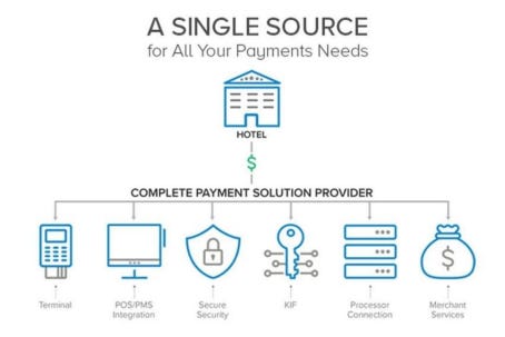 If you’ve ever visited a hotel with various purchase points across the property – front desk, spa, restaurants, gift shop – FOUR takes the different software required to accept payments at each purchase point, and integrates them into one single-source solution, making the customer’s life (in this case, the hotel) more efficient and lower cost. Instead of managing multiple pieces of hardware, multiple support systems, and multiple transactions reports, Shift4 integrates everything into one unified system. In other words, as discussed, FOUR absorbs the complexity of disparate systems and software and spits out a simplified solution for the customer.
